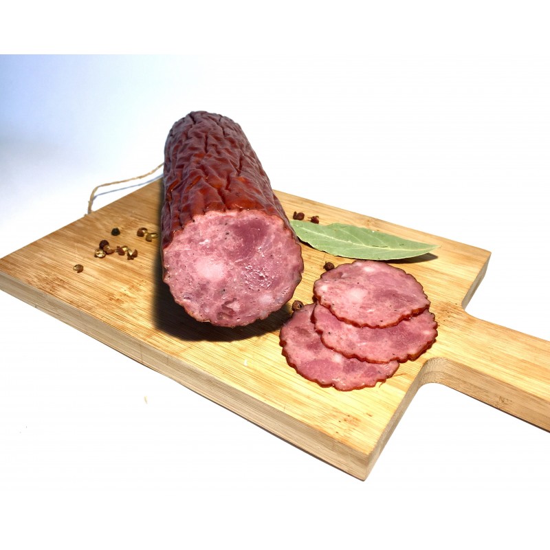 Klasyczna krakowska sucha w dzikiej odsłonie - jeszcze więcej smaku i przyjemności dla podniebienia dzięki dużym kawałkom chudego mięsa dzika. 100% dzik.